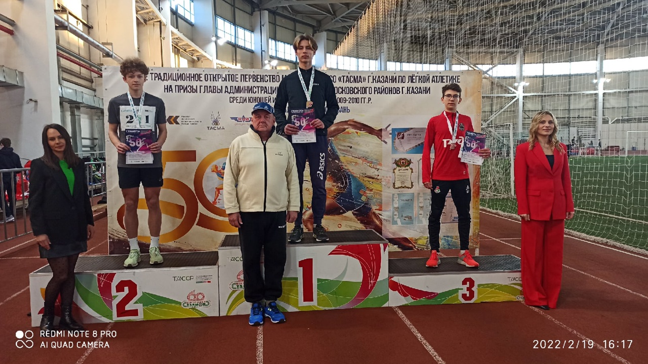 19 и 20 февраля в футбольно-легкоатлетическом манеже центрального стадиона города Казани прошло юбилейное 50-ое открытое первенство МАУ СШОР «ТАСМА» по легкой атлетике на призы Главы Администрации Кировского и Московского районов, посвященное «Дню защитника Отечества» среди юношей и девушек 2007-2008, 2009-2010 г.р.