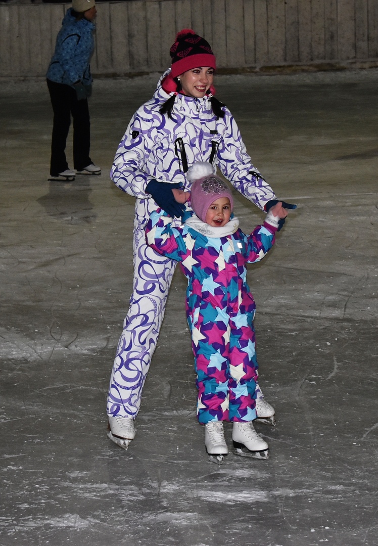 Дискотека "Горячий лед" стала прекрасным украшением новогодних каникул. В основном покататься пришли школьники, но и взрослым новинка пришлась по душе. Главным героем вечера стала тренер ДЮСШ по фигурному катанию Валерия Храмцова, которая поприветствовала собравшихся, и, к всеобщей радости, исполнила несколько непростых элементов из репертуара фигуристов.